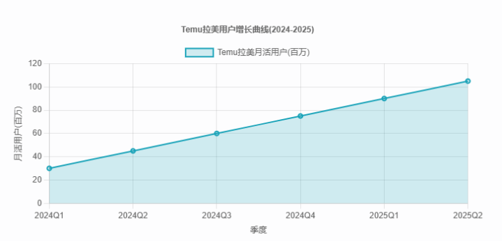 2025年上半年,拉丁美洲电商市场上演了一场静默的革命:Temu的月活跃用户数同比暴涨143%,达到1.05亿——这意味着每6个拉美网民中,就有1个正在使用这款来自中国的购物APP。