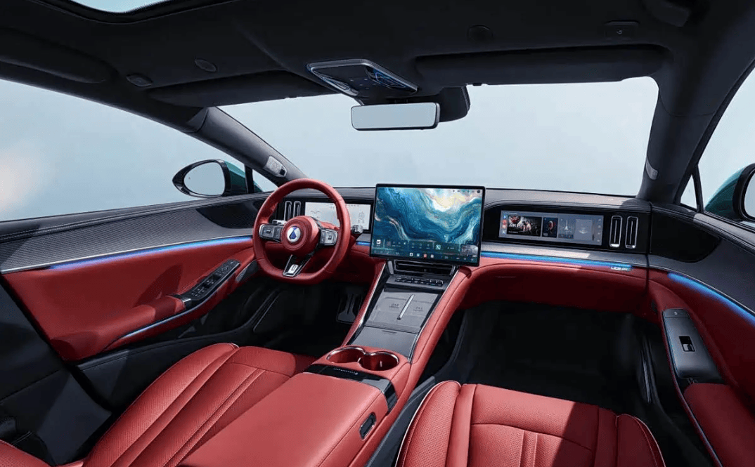 走进车内,全新腾势Z9GT同样令人眼前一亮。新增的熔岩红内饰搭配运动一体式座椅、碳纤维内饰套件和三幅式运动方向盘,营造出强烈的战斗氛围。一键BOOST竞速拨片的设计更是点睛之笔,让驾驶者瞬间感受到速度与激情。细节方面,空调出风口经过重新设计,金属质感怀挡和菱形绗缝工艺的加入,进一步提升了豪华感。专属铭牌的点缀,则让每一辆车都显得独一无二。