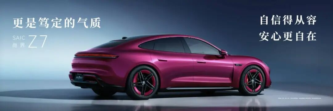 作为一台主打年轻市场的科技轿跑,尚界 Z7 拿出了一个跳脱的外观方案——一个名叫「电光紫粉」的专属配色。