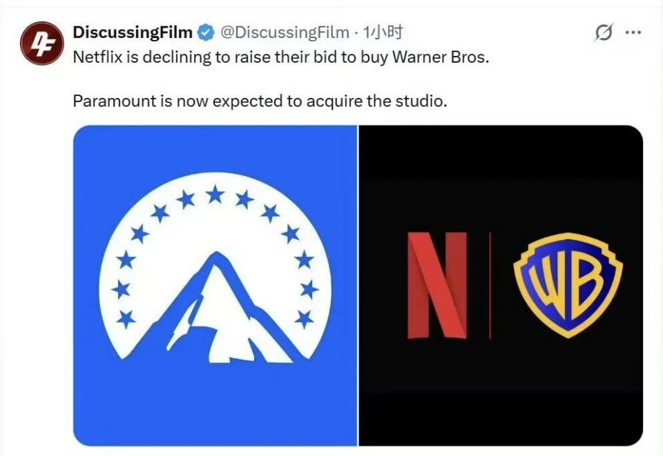 这一决定宣告了持续三个月的好莱坞世纪并购战迎来重大转折,也标志着流媒体行业竞争进入新阶段。这场原本被视为网飞“拿下华纳、称霸好莱坞”的胜利在望,却在最后一刻被派拉蒙天舞以1110亿美元的天价“截胡”。