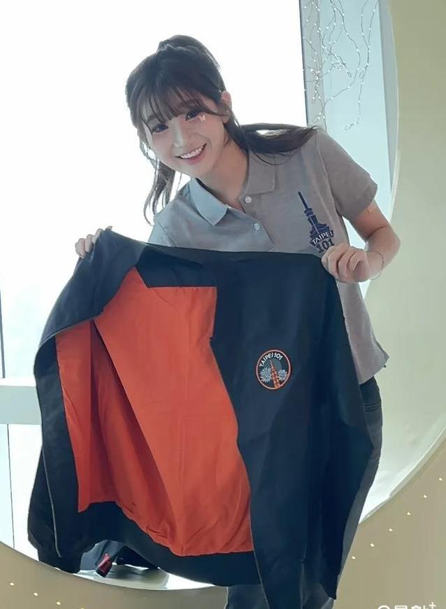 礼包组是她亲自选的。里面有台北101塔尖黑色棒球帽。灰色塔尖POLO衫和黑色飞行外套也包括在内。