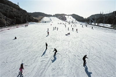 曦岭滑雪场内,游客们穿梭于雪道间。牛利敏 摄