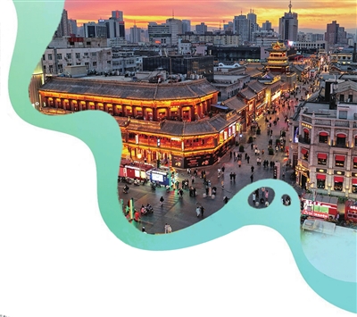 钟楼街灯火辉煌,游人如织。 王韵菲 摄
