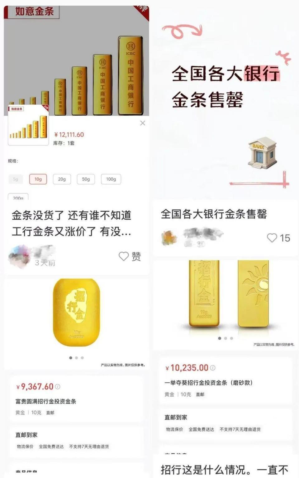 就在这几天,全国各地的银行网点,投资金条几乎全线告急。 杭州有网友吐槽,跑了好几家银行,就剩一根50克和一根100克的金条,小克重的早就没了。 更夸张的是,部分银行的手机APP上,金条产品直接“消失”,连搜都搜不出来。