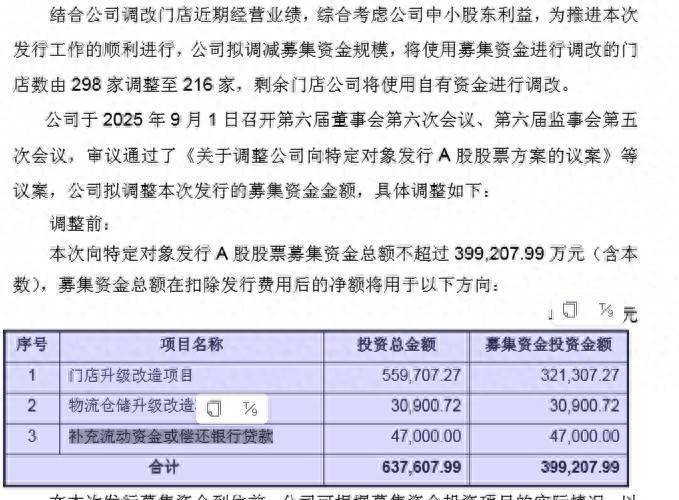 根据调整后的方案,永辉超市本次向特定对象发行A股股票的拟募集资金总额由此前不超过约39.92亿元调整为不超过约31.14亿元,约缩减金额8.78亿元。